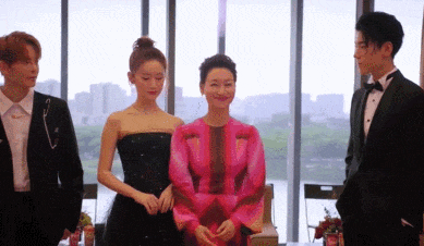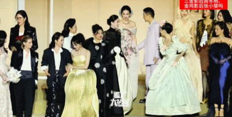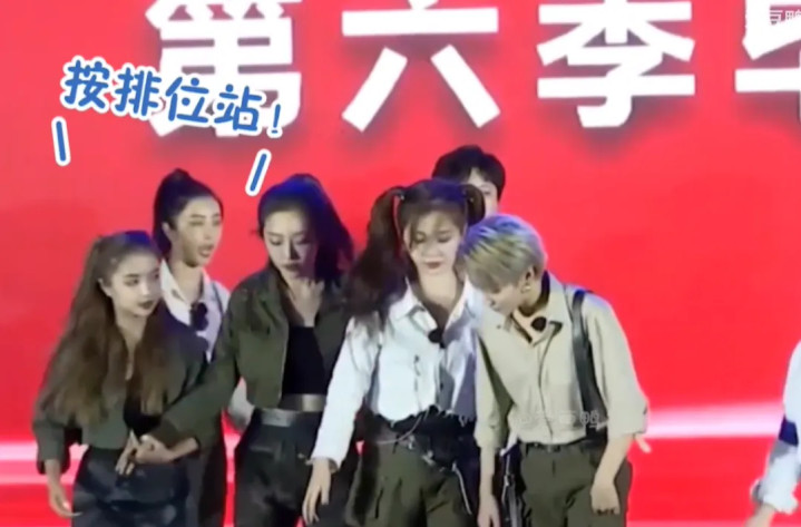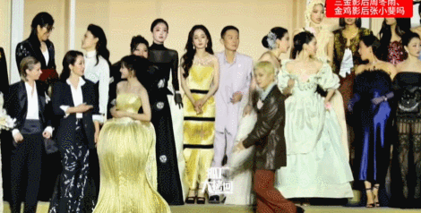 似乎就是因为她守着中间位置不往旁边站,才让主办方和顶流没地儿站。